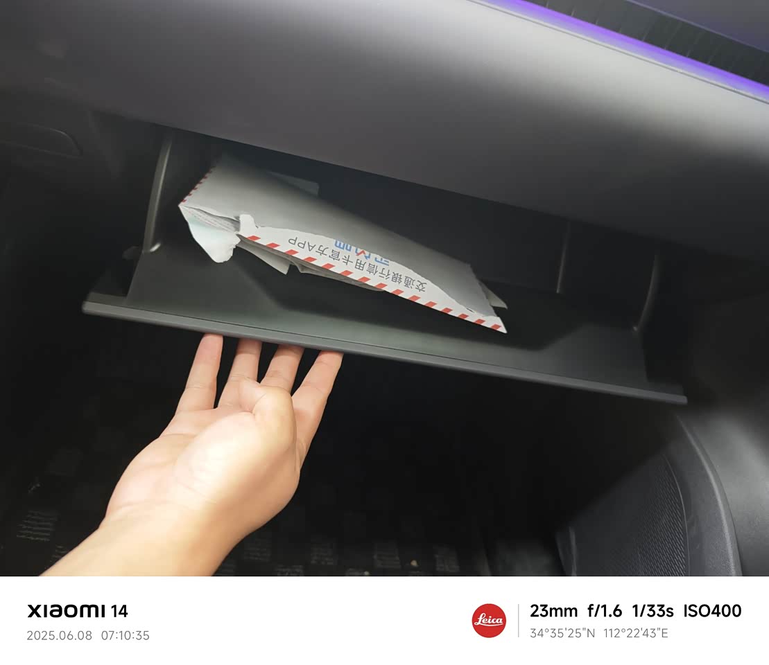 门板储物空间能放4瓶矿泉水,全车4个杯架够用了,其他的没啥储物空间,吐槽一下手套箱的设计真是有点鸡肋了,放不了大东西,希望以后厂家改善这个设计。