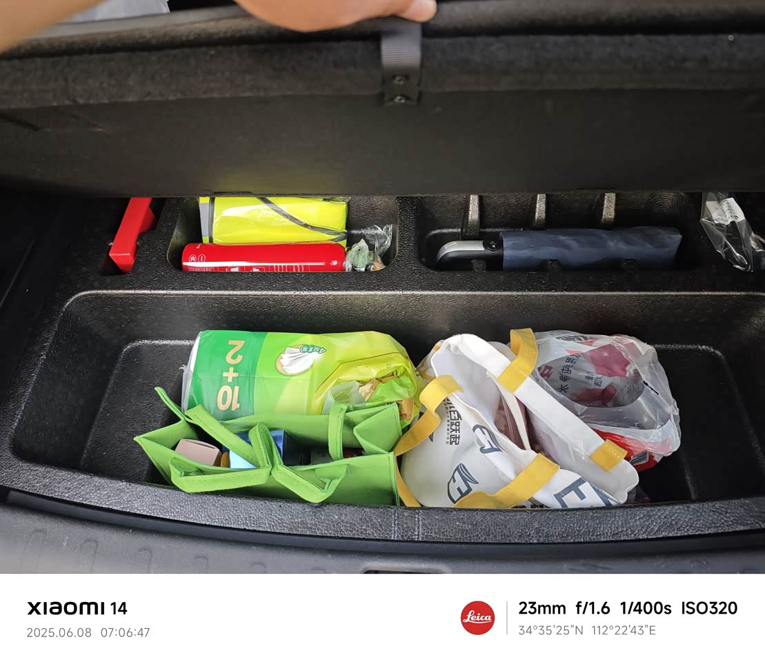 后备箱有上下两层我感觉空间够用了,下层放一些杂物什么的挺方便的,还可以自己加装前备箱,拓展储物空间。