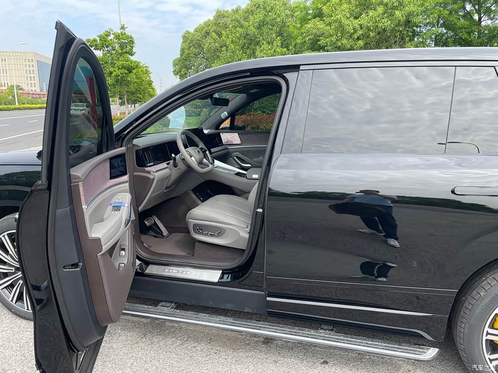开起来的第一感觉是动力太猛了,2.0T发动机➕三电机,平时在市区超车,那叫一个轻松,深踩油门,推背感十足。底盘调校得也很不错,过减速带或者坑洼路面的时候,震动过滤的很好,坐在车里很平稳,还有后轮转向功能,这么大的车,转弯半径居然和小车差不多,在窄路掉头轻轻松松。