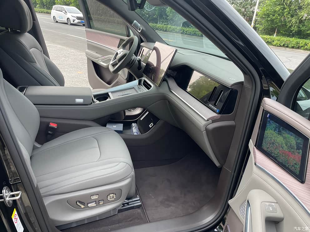 前面也提到了,空间真的是腾势N9的一大亮点,我身高185,坐在驾驶位。头部和腿部空间都很充裕,一点不憋屈,家人坐在第二排说比家里沙发还舒服,腿托和按摩功能,简直是“头等舱”待遇,第三排也不是摆设,坐2个成年人短途完全没有问题,长途的话把座椅角度调一调,也能舒舒服服的。