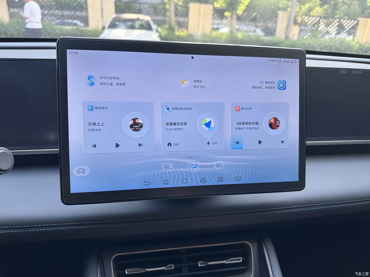 内饰也非常现代化,档把好看像一颗闪亮的大宝石,手感特别好。颜值也特别高。还有一个大屏看着够清晰,还能旋转这个可太给力了。很新颖。还配备了大天窗 整体内饰搭配起来很有质感。