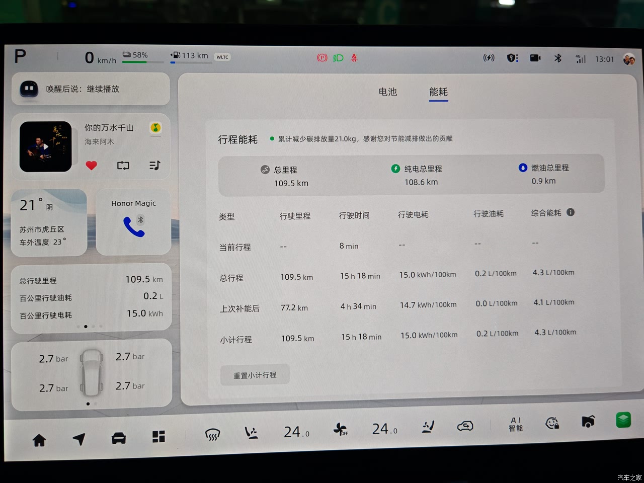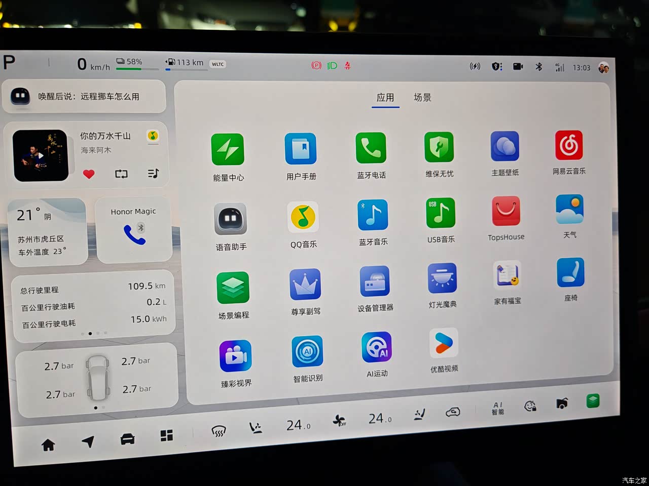 这车对于驾驶员的照顾还是非常人性化,驾驶员可以根据自己的需要在软件上进行不同驾驶感受调节,方向盘的转向、悬架硬度、hud高度、座椅记忆等等,几乎都考虑到了。实际开起来转向没有明显虚位,几乎指哪打哪,变线什么的都很稳,而且有变线辅助这些辅助工具,底盘对于细小的路面不平过滤的恰到好处,很舒适,提速的响应和加速感是电车独有的优势,这几天下雨刮风,但是高速跑起来车身稳定性也不错,米其林的轮胎时速在100以下几乎听不见胎噪,车内很是安静,这些是之前的开的油车是无法媲美的,反正这车整体开起来有一种高级感,让开车不再是简单的点对点的运送人的任务,而是变成了一种享受。