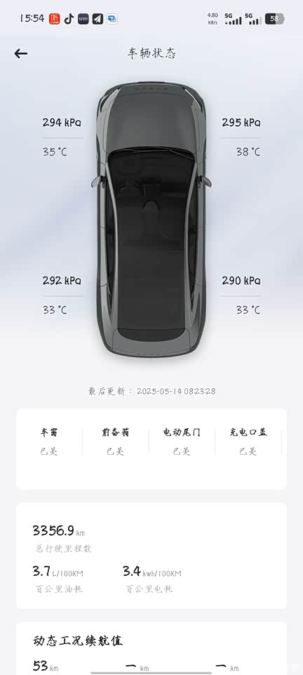 纯电WLTC200公里基本如厂家实标数据,能跑满出头205-210的样子,冬天没试过杭州应该问题也不大。综合续航刚试过,说是1650,实际满油满电表显1510.正常开通勤基本在1250-1350公里的样子,我每天通勤来回共50多公里,有35公里的城市高架,满油满电开一个月。各位可以自行参考,但是很遗憾没有实测照片,燃油模式的油耗照片各位自行评价,总是反向充电,增程器确实有技术的!这可是裸重两吨多的五三二的C级中大型车!