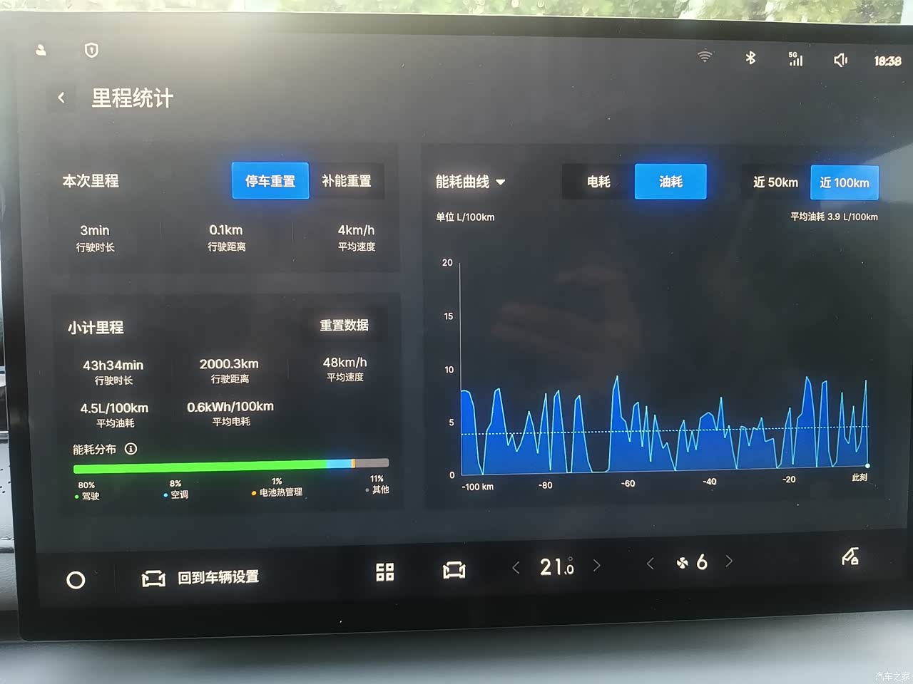 续航用的来说一般,纯电续航表显还是比较准的,但是油续航里程很虚,满油情况下打个七折左右,在高速行驶油耗在5个左右,市区在6个左右,不过总的来说续航方面还是算可以了,在可接受范围内