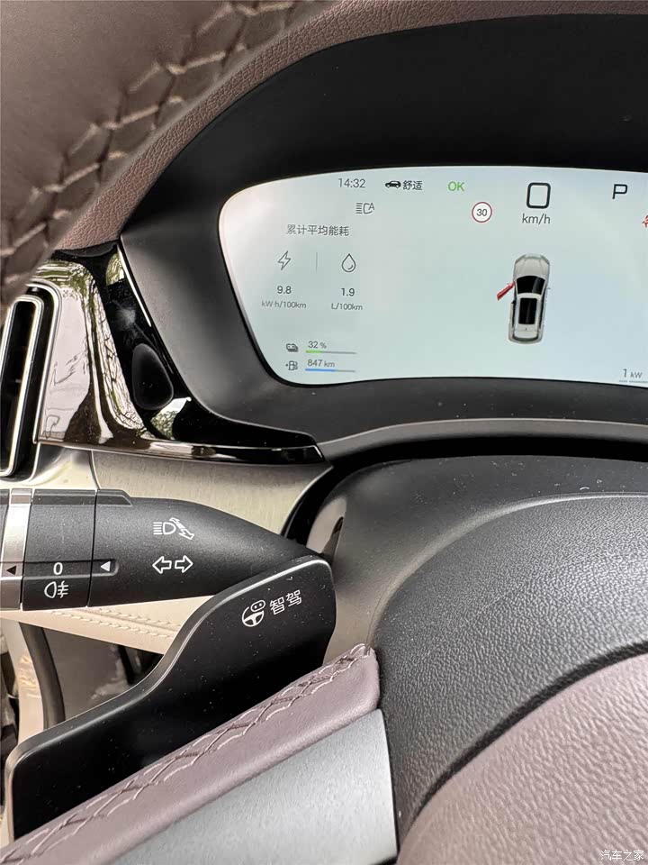 续航表现也很不错,跑这么远才用了点电,各种路况都hold住,耗电量稳,而且兼具1500km续航与3.9L超低油耗。