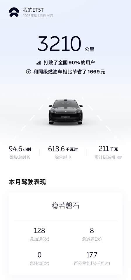 【蔚来ET5T车主亲测:用车近一年后,我为什么劝朋友闭眼冲?】 作为观望许久决定下单入手的蔚来ET5T车主,提车大半年跑了3.1万公里,从跨省自驾到日常通勤,这台车彻底治好了我的“补能焦虑”和“面子焦虑”。今天聊聊真实体验 最满意: 颜值原创天花板、内饰高级北欧风、空间大非常实用、动力强劲加速快、操控优秀、智能化高智驾强、换电补能超便捷、用户服务超预期 (文中实测数据来自我自己的NIO App旅行日志、月报等)