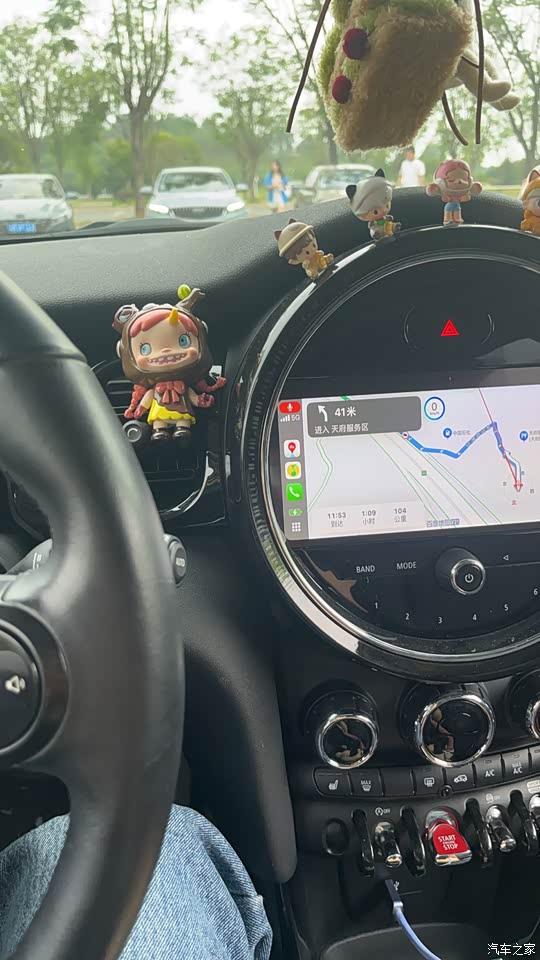 内饰也很可爱的,到处都是经典元素,只有mini才有的,很喜欢,车里全是泡泡玛特,哈哈哈哈