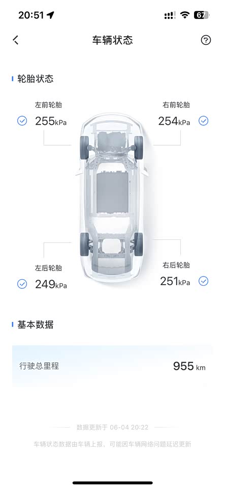已经开了955公里里程,冲过5次电,300块的油,油续航显示1200km,现在还剩771km。