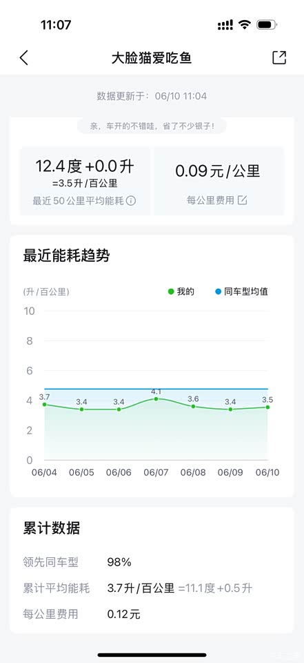 能耗表现优秀,做为一款suv,每公里费用仅为0.12元,简直太优秀啦!每天上下班30公里,电量掉20%,基本四天充一回电。跑高速的话能耗会好点,满电差不多能跑将近100公里