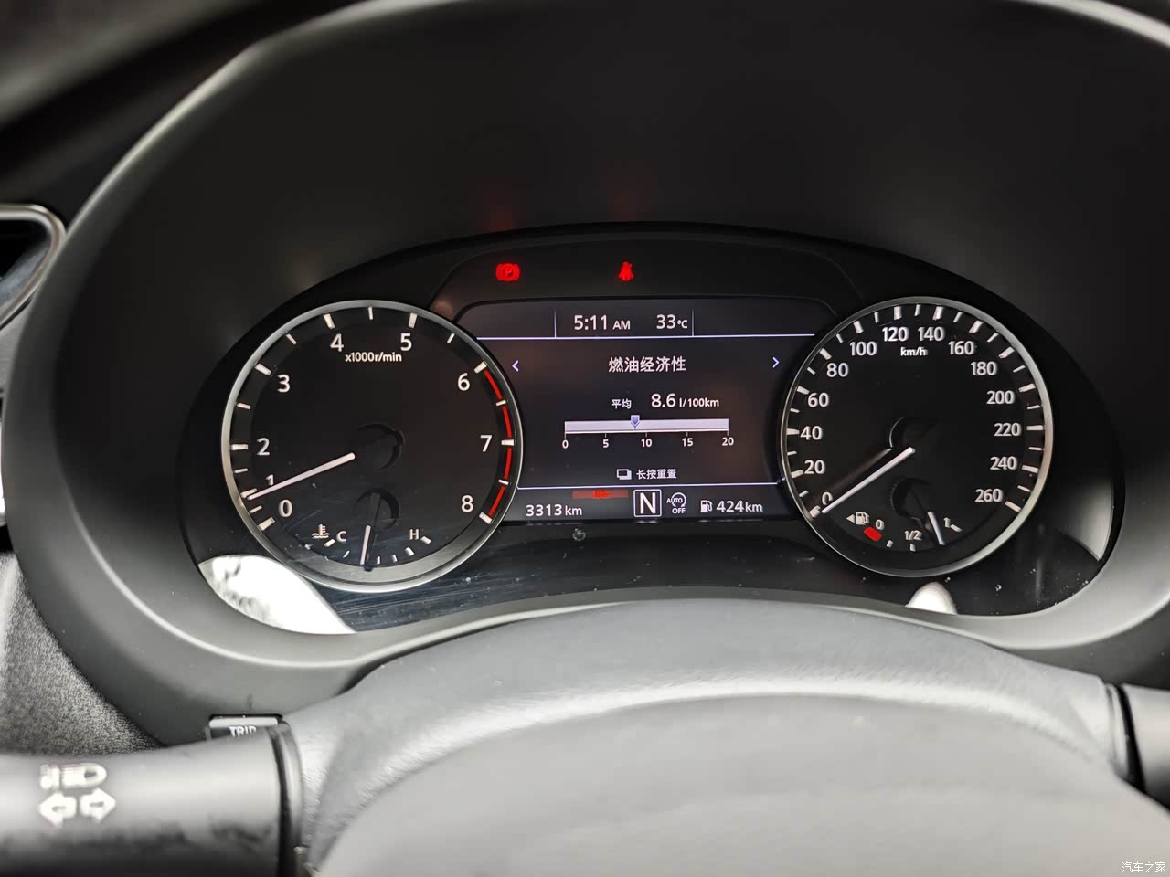 配置上,L2级辅助驾驶和VC Turbo发动机完全能满足我的需求。虽说这台发动机也用在天籁上,但动力输出更线性。之前开的马自达是AT变速箱,换挡响应明显且发动机噪音大,夜里启动整个小区都能听见。而这台车启动时声音很小,行驶中发动机噪音也低,搭配的CVT钢链式变速箱油门响应平顺,几乎感觉不到换挡,开起来特别舒服。虽然有人偏爱AT变速箱,但我从AT换到CVT后发现,CVT在日常驾乘、高速长途和通勤时,舒适性优势更明显。