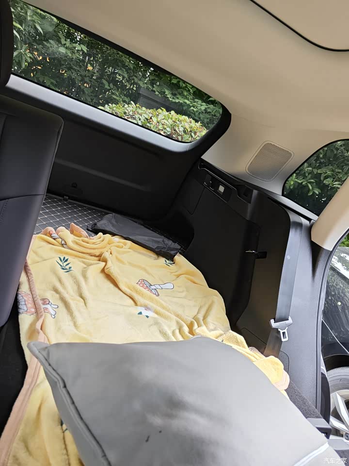 空间方面,如果不放床垫的话,我1米77的身高在后排横躺以及后排放倒在后备箱竖躺都不能伸直,前排放平躺在前排和第二排的是可以躺平的。后备箱不小。