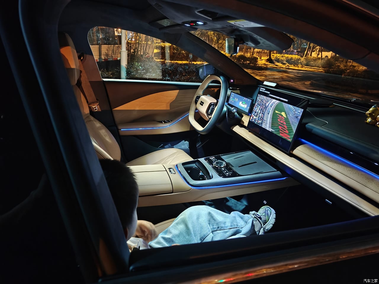 最满意的是外观和动力,黑色沉稳大气,五米多的车,选个深色又不显得臃肿,侧面线条优雅流畅。搭配棕色内饰,做进去扑面而来的是一种老派的豪华感。新能源带来的动力是我的旧车不能比的,踩一脚就有很强的推背感,爽的很。每天都爱不释手,停车总会多在车里待一会儿,下车回家也是一步三回头😂哈哈