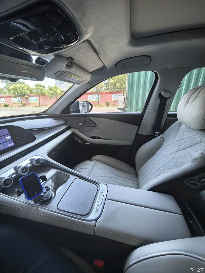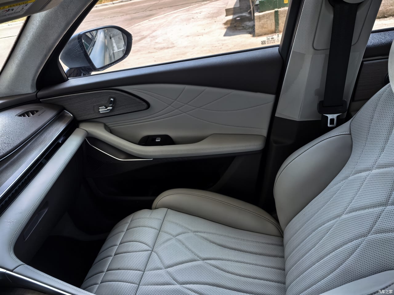 全车座椅都是nappa真皮座椅+翻毛皮的配置,舒适度很好,双联屏也独具特点,第一排主副驾座椅标配座椅加热,座椅通风,座椅按摩,副驾还支持一键放倒的女王模式,后排地板纯平,也支持放倒和后备箱形成一个大床,露营睡觉完全没问题。