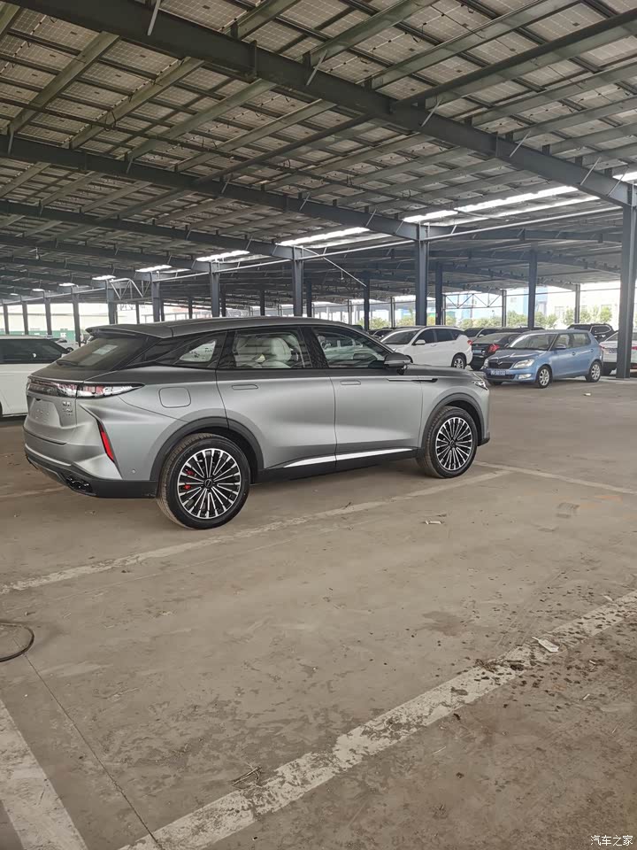 后悔没有上顶配,我买的PRO版本没有中网贯穿灯,少了那么一丝丝灵魂,不过显眼的行车灯和遛背的造型也从开始就俘获了我的心。总体看着就是大气,我加了3000买的犀角灰,漆面有磨砂质感,小刮小碰都不会留下痕迹。