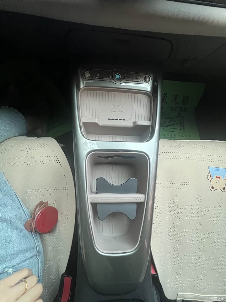 米棕色搭配,简洁明了,扶手箱深度容积很大,可以放很多东西。水杯架也很方便,大小杯子都可以使用。50W手机无线快充,便捷高效。