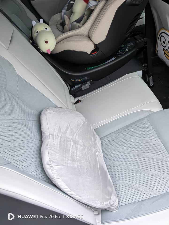 前排座椅调到我合适的位置(本人1米78),后排老婆带娃坐,娃在安全座椅上踢腿没问题,中间过道也宽敞,老人上下车不用挤。后备箱才是亮点,平时日常用能塞下婴儿车+买菜的大包小包,上周全家去周边露营,后排座椅放倒后直接塞下帐篷、折叠桌椅、烧烤架,甚至还留了点空间放零食箱。前排扶手箱和门板储物格设计挺合理,水杯、钥匙、墨镜都有地儿放。