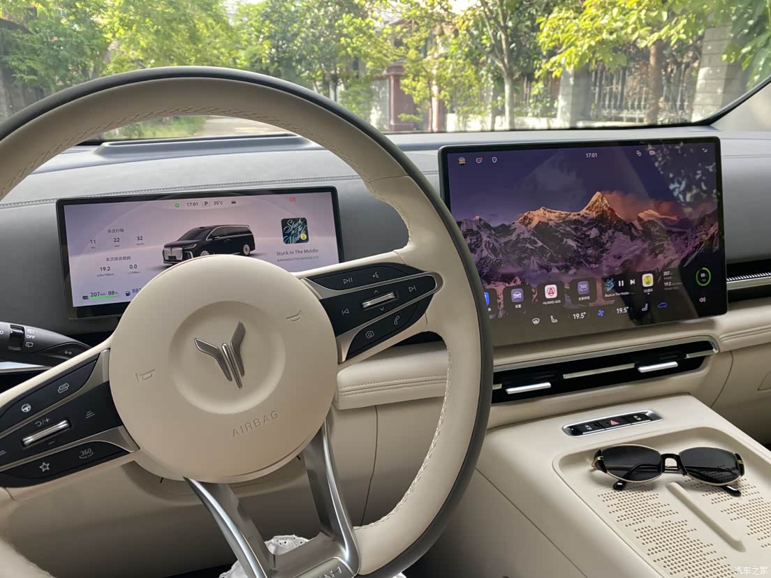 原来我爸的车是奥迪Q7,车重方向盘也重,开车开久了手酸的不行,梦想家开起来让我很意外,一点也不像5米多的大车,方向盘很轻,动力也是随踩随有,混动模式提速快且安静,过减速带也不颠,高速也稳如老狗。360度影像在过窄路的时候也能清晰的看到距离旁边多少米,避免了剐蹭风险,开了两天我就可以完全适应新车尴尬期了。