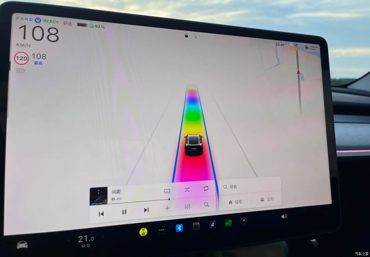 刚上车到启动很流畅很丝滑,挂档在大屏幕上,挂档要抬手,包括一系列的空调之类的都要在屏幕上调节科技感十足! 比起来油车,开起来之后的感觉就是整车都是松松的感觉,电门松松的,稍微踩一脚就能飙到80,方向盘松松的,但能够指哪打哪,油车油门和方向盘都是巨重无比,特斯拉的就很丝滑.