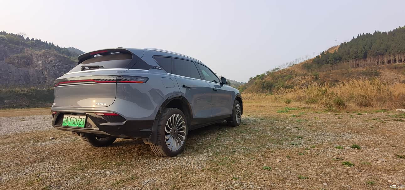 当时选车时,第一眼就被岚图FREE的外观吸引了。前脸看着挺霸气,中间的岚图LOGO还能发光,晚上解锁车的时候,流水型的贯穿灯带和发光车标太好看了。车身侧面是溜背造型,线条流畅,D柱反向倾斜特别像游艇的设计,配上20寸的涡扇大轮毂,运动感一下子就来了。我买的是青云灰的颜色看着很清新,阳光下有点渐变的效果,关键也耐脏。