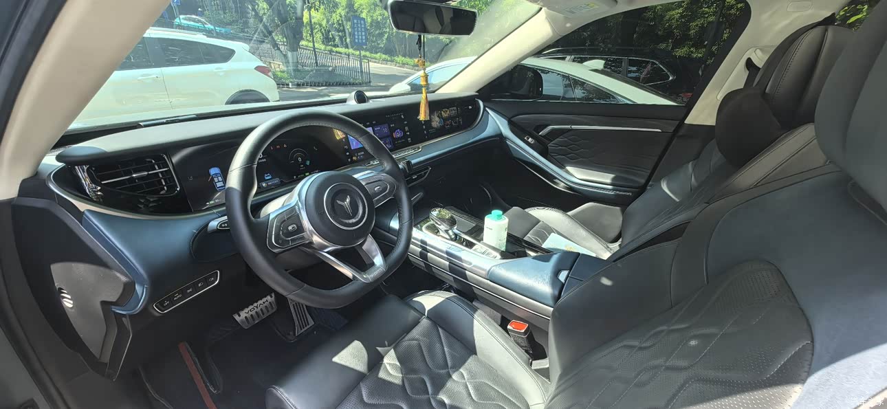 开起来最大的感受就是“稳”,双叉臂+多连杆的悬架,过减速带或者坑洼路面时,滤震效果不错,颠簸感不会生硬地传到车里,坐在后排的家人都说坐着不颠得慌。转向手感适中,不轻不重,高速上打方向很精准,开长途也不容易累。增程器平时不启动时挺安静,纯电模式下几乎没声音,跟开电动车似的。但要是电池电量低于20%,增程器启动时能明显听到发动机的声音,尤其是低速行驶时,有点“嗡嗡”的,虽然不算特别吵,但对比之前的安静,突然来这么一下有点突兀。后来我学聪明了,快没电的时候提前切换到燃油优先模式,让增程器平缓介入,好多了。