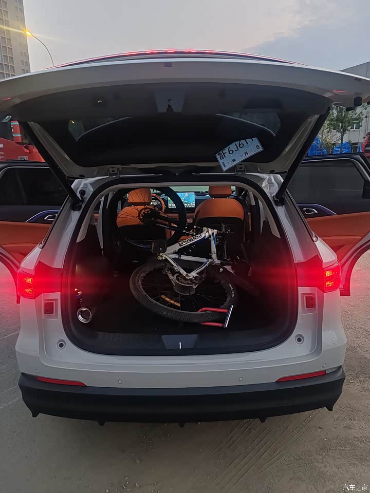 空间足够,后备箱能放下一辆自行车。储物空间充足。