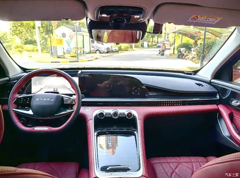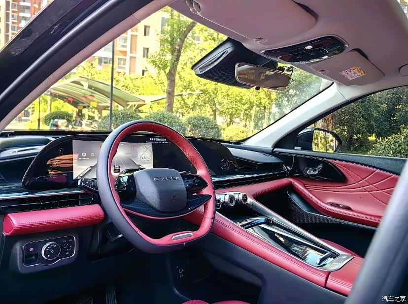 内饰方面,我就是因为那个环抱式的氛围灯才关注到这个品牌的,真的很好看。而且整车都是真皮包裏的,目手感超级好,摸到的地方都是软软的。