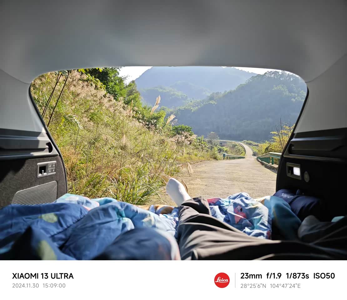 前后排空间,后尾箱空间都很不错,前备箱也装得满满的,很多露营的装备放前备箱。我一年四季长期放倒后排,在车里午休,非常满意的,特别是露营模式出来后就更方便了。需要改进的地方是小的储物空间可以多分割一些出来。