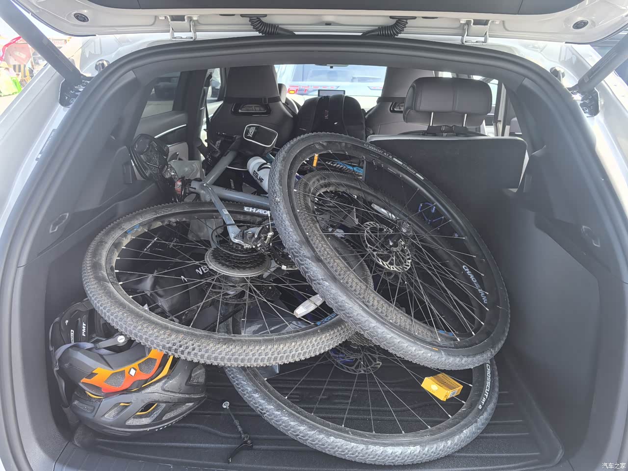 空间是非常非常优秀的,可以同时装下两辆自行车也可以同时装上4个26寸行李箱。满足汽车的4+2出行