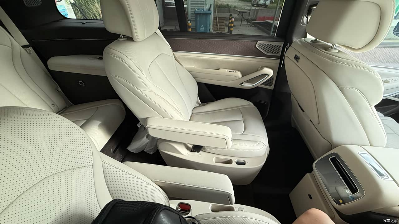 第三排座180的成年男性腿和第二排座椅还有3到4指的距离,加上座椅可以后靠更不会觉得压抑。而且两侧的扶手足够宽
