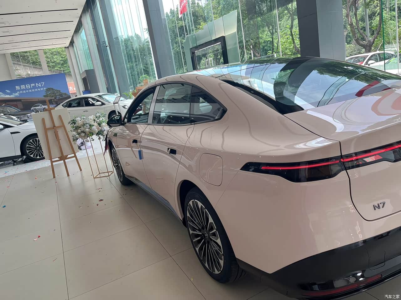东风日产N7真实用车感受,优缺点超详细! 在新能源车浪潮下,我也将购车目标转向了纯电车。预算有限,主要考虑15万以内的车型,期望车子空间大、配置丰富,续航还得实在。那段时间,我跑遍了4S店,试驾过比亚迪汉EV、小鹏P7i,也瞧过吉利银河E5 。比亚迪汉EV电池技术确实厉害,可内饰质感没达到我的预期;小鹏P7i智驾系统先进,但后排空间稍显局促;吉利银河E5价格吸引人,不过品牌底蕴上差了些。 直到邂逅东风日产N7,就像遇到了命中注定的爱车。它外观简约大气,线条流畅,分体式大灯组超有辨识度,悬浮式车顶设计更是时尚感拉满,完全长在我的审美点上。深入了解后,它丰富的配置和亲民的价格,性价比超高,直接让我心动下单。 驾驶体验:舒适与激情并存 日常在城市道路驾驶,N7的舒适模式堪称通勤利器。动力输出特别平稳,电门响应也很灵敏,轻轻一踩,动力就稳稳输出,起步、跟车都轻松自在,完全没有顿挫感。而且方向盘转向力度适中,手感超棒,指向精准,开起来很顺手。日产“大沙发”果然名不虚传,座椅的包裹性和支撑性都非常出色,久坐也不会觉得累。有一次我连续开了三个小时,下车后身体也没有丝毫的疲惫感,腰部和背部也没有酸痛感。 运动模式下的N7,简直像换了一辆车。深踩电门,强烈的推背感瞬间袭来,超车的时候特别干脆利落,驾驶乐趣一下子就有了。不过在高速上超车时,电机的噪音会稍微明显一些,但还在能接受的范围内。底盘调校得相当不错,过减速带或者坑洼路面的时候,震动过滤得很到位,车内几乎感觉不到颠簸。 续航表现:真实可靠 我买的是625MAX版本,官方续航625公里。日常市区上下班,加上周末出去逛逛,全程开着空调和音乐,实际续航能达到490多公里,这个续航达成率真的挺让我满意的。而且它的快充速度很快,在快充桩上,30分钟左右就能从30%充到80% ,吃顿饭的功夫,电量就又能满足几天的日常出行了,完全没有续航焦虑。 智能配置:便捷与乐趣兼具 车机系统搭载了8295P芯片,运行特别流畅,用了这么久,几乎没有出现过卡顿的情况。语音助手“小尼”识别准确率很高,像导航、播放音乐、调节空调温度这些操作,直接动动嘴就能搞定,开车的时候操作起来既方便又安全。有一回我要去一个不熟悉的地方,直接喊“小尼,导航到XX”,它马上就规划好了路线,反应速度超快。 自动泊车功能对我媳妇这种停车困难户来说,特别实用。有一次在商场停车,车位比较小,我媳妇直接开启自动泊车,车子稳稳地就停进去了,方便又省心。不过自动泊车的时候,动作会稍微有点激进,第一次用的时候还把我们吓了一跳。 空间表现:宽敞舒适 N7的空间表现非常出色。我身高175cm ,坐在驾驶位,头部和腿部都有充足的空间,头顶距离车顶还有一拳多的距离,腿部也能自由伸展。调整好坐姿后,后排坐人也不觉得拥挤,跷个二郎腿都没问题,一家人出行也不会觉得局促。后备箱空间也很大,周末去超市采购,或者一家人出门旅行,装行李完全不用担心不够用。 外观与内饰:颜值在线,质感有待提升 外观真的是越看越喜欢,走在路上回头率超高。独特的前脸设计,搭配流畅的车身线条,时尚又大气。内饰整体风格简约而不失豪华,中控台采用了大量软性材质包裹,触感柔软,细节处的缝线工艺也很精致。悬浮式的中控大屏尺寸很大,显示清晰,操作也很方便。唯一不太满意的地方就是,车内有些边角位置塑料感还是有点强,要是能再多一些软性材质或者皮质包裹,质感肯定能更上一层楼。 在一个月的使用过程中,东风日产N7也并非十全十美。隔音效果是它的一个短板,高速行驶的时候,风噪和胎噪会比较明显,影响车内的静谧性。还有就是扶手箱的储物空间比较小,放不了太多东西,不太方便。不过这些小缺点并不影响我对它的喜爱,整体来说,东风日产N7是一款非常值得购买的纯电动车 ,强烈推荐给大家!
