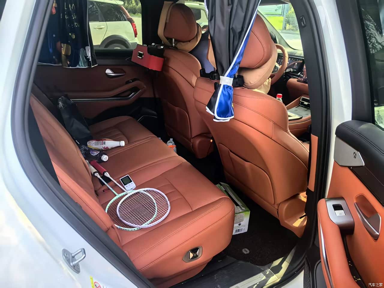 高档真皮:座椅采用NAPPA真皮材质,触感柔软细腻,前两排4个座位均支持电动调节、通风、加热、按摩等中控台面板采用天然竹木材质,通过3D雕刻工艺制作,每一块竹木面板都经多道工序完成,传递出自然温暖的气息,金属饰板:部分车型采用金属材质饰板,与竹木饰板相得益彰,提升车内层次感和豪华感。