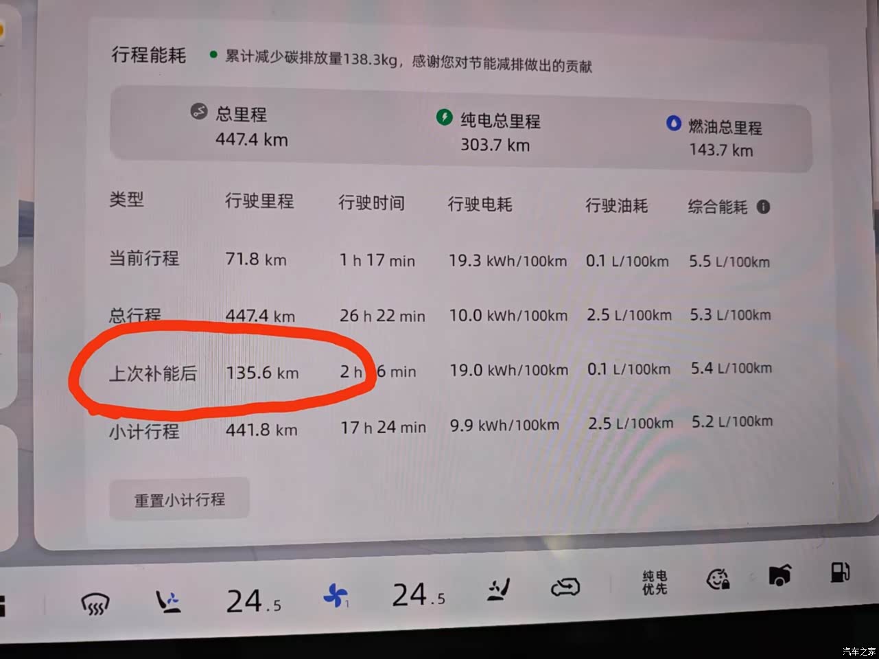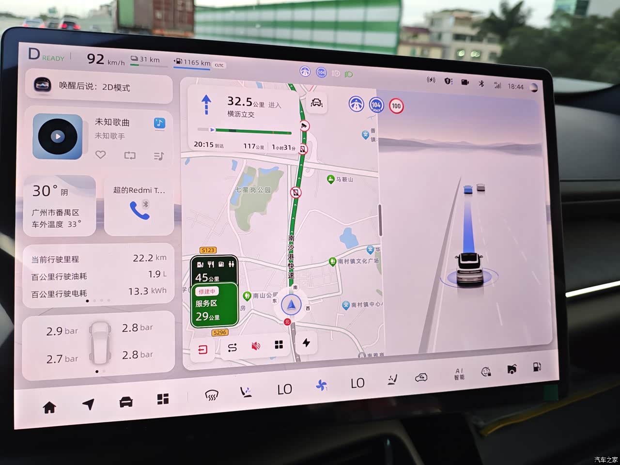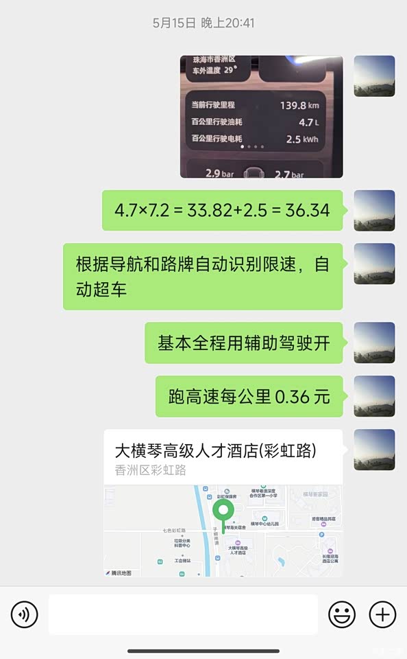 提车回来不到一周,我就跑了趟珠海。顺便测一下纯电的高速能耗。在纯电模式下跑高速可以跑135km,之后就会发动机介入。对于这么一台大型的SUV来说,他这个续航里程我还是比较满意的。在只有一半的电的情况下,我从珠海回来,用它自带的AI驾驶模式,每公里费用只需要3毛6。
