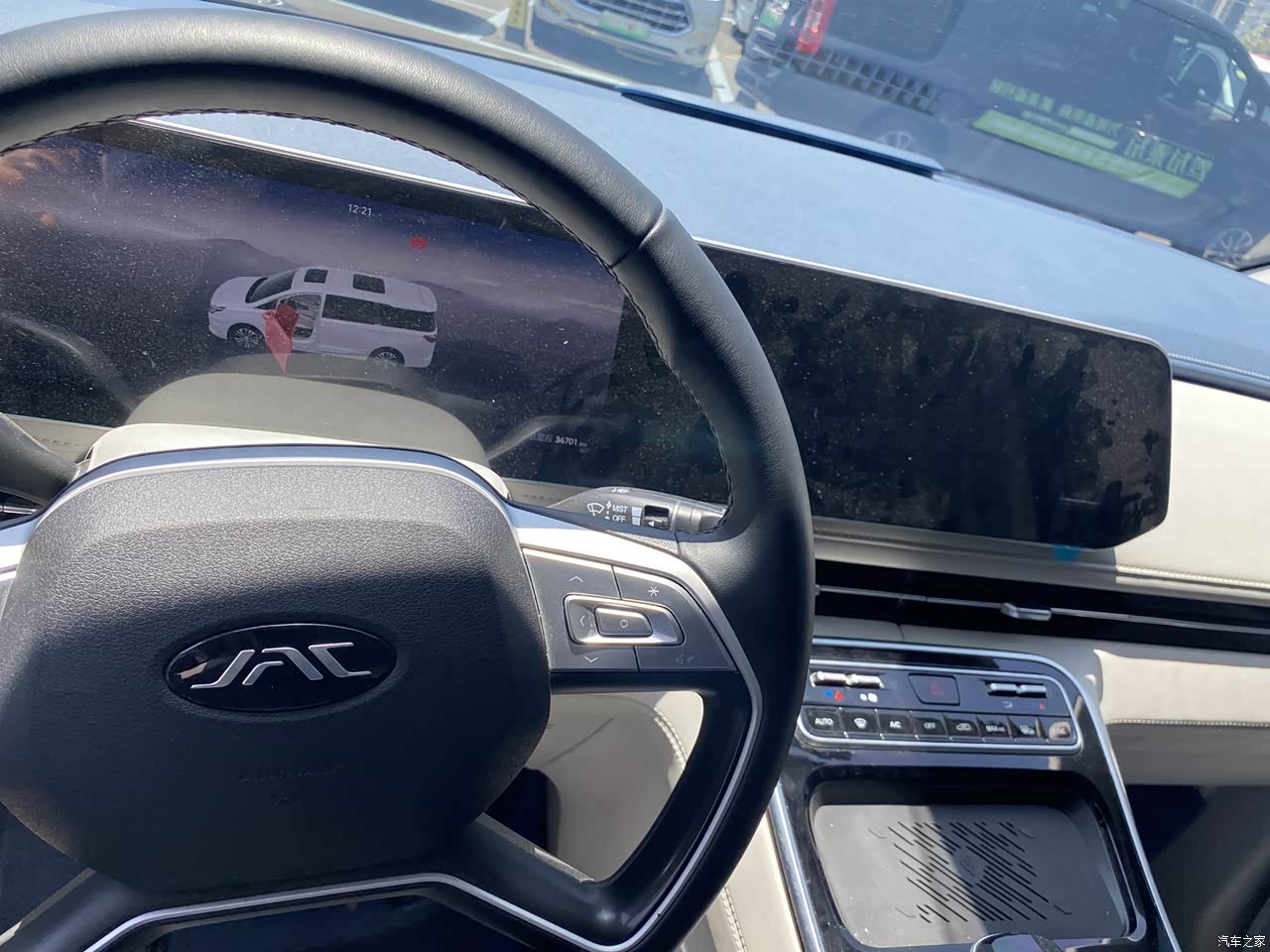 这款江淮瑞风RF8 PHEV旗舰型,动力是1.5TGDI+3DHT的,双侧都是电动门,而且它前后都有泊车雷达,而且它还能全速自适应巡航,后备箱可以感应记忆哦,前面有个双12.3英寸高清平,所有配置都是很安全的。