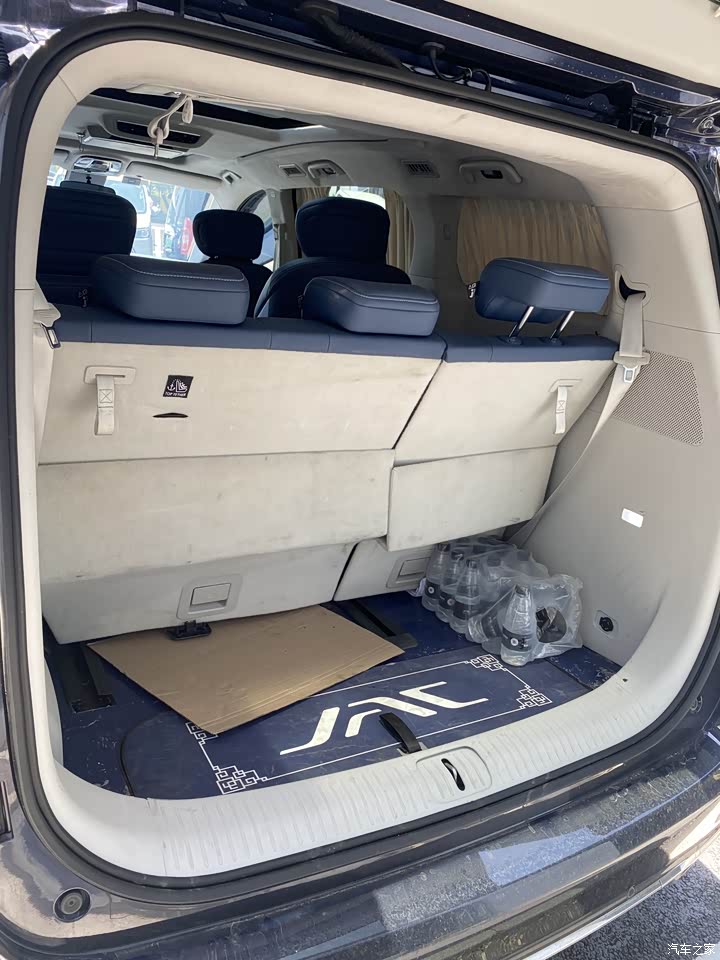 特意去看了空间,空间挺大,家用的话是绰绰有余的,前排主驾是电动调节的,高矮胖瘦都可以,我180的身高,有160斤,有点啤酒肚,坐主驾没有碰头和抵方向盘的尴尬。第二排是独立座椅,有通风按摩的功能,不得不说,确实商务。第三排如果不改房车,还是可以,是加宽加厚的,在里面躺一下是没问题。