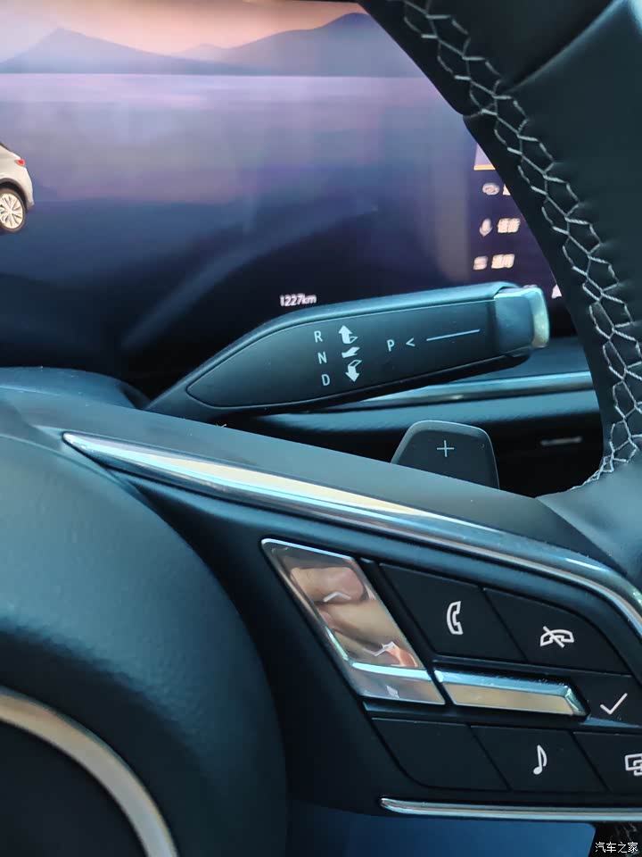 跟我原来车你,内饰肯定是好看,用料也都是皮的或者软的材质。这里特别说的是之前看的探岳就显得比较古老。 有空调的物理按键,这玩意绝对实用,而且简单明了,好操作。 挡把在方向盘后面,很方便。 屏幕是一个连屏,分辨率没问题,很清晰。 抬显的位置扣了一个盒子,显得比较难看,既然没有配置,直接一个整体的平台就行了。 需要吐槽的就是导航系统比较LOW,远远不如手机来的快和准确。歌曲基本都是要钱的。其他功能正在琢磨。 另外刚买车的前几天,车里味道很大,现在过去一周了,味道基本没了。 搞笑的一件事就是把手盒,是自己往上套。