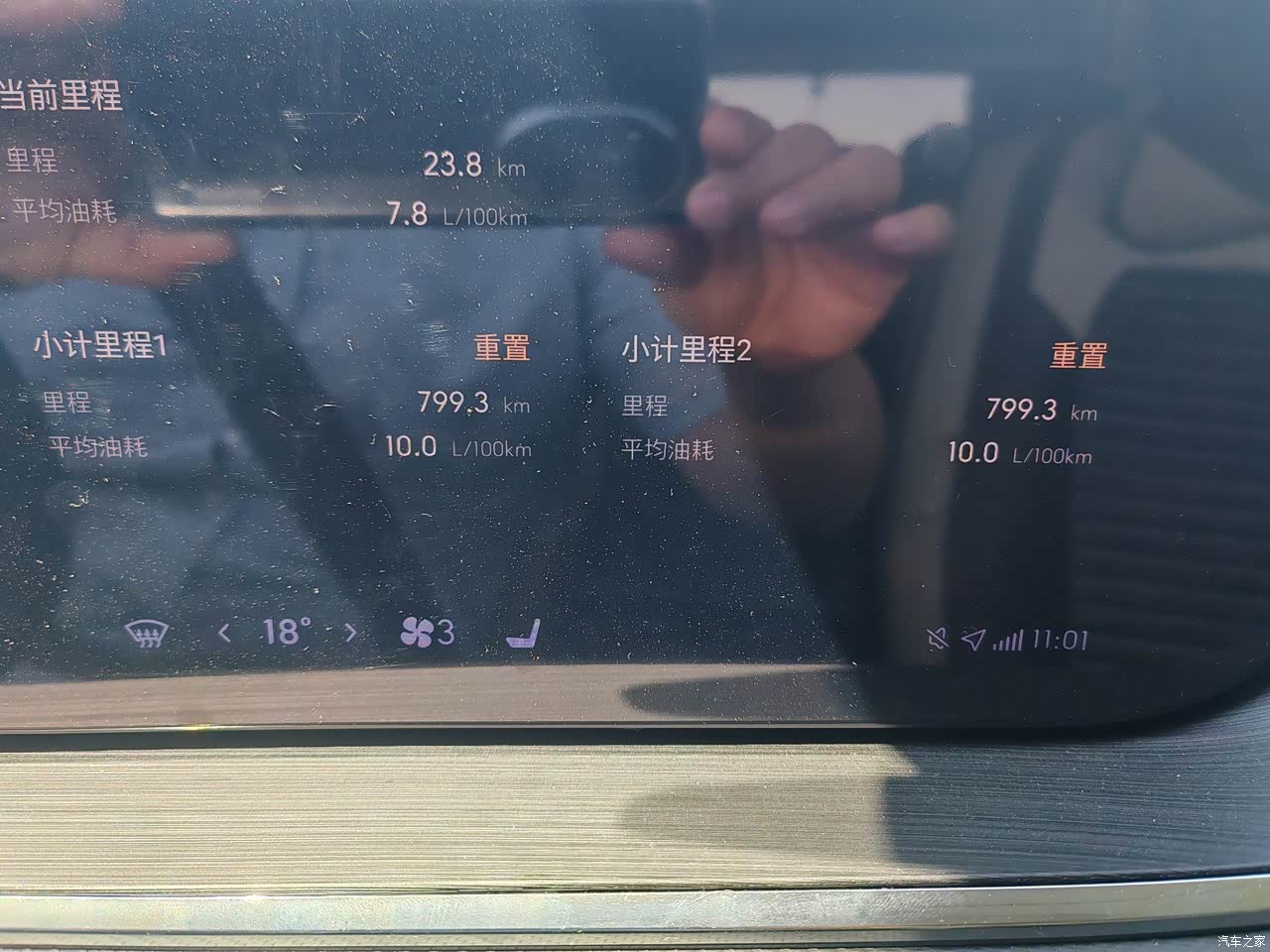 目前跑了接近1300公里。 早晚高峰大概在11个多一些。 平时市区跑在9个左右。 跑城市快速路,80-90的速度,油耗能到7.1。 昨天跑了一次高速,特意看了一下屏幕,7.8,安吉星显示7.29。 以上均来自车机或者安吉星。 我自己算了一下,900元油钱,预计1500公里,按照7.9元油价算,油耗7.6,这个数跟车机上的那个综合油耗10.0差别化很大。 能接受,因为自重就比原来车重了很多。