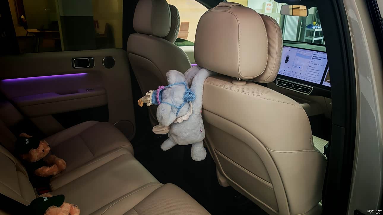 内饰还是能够感受到理想汽车的诚意和品牌力的。 用料充足,有点豪华感和科技感在里面的。 我很喜欢这种简单的风格,没有多余的颜色和材料,这就是我想要的。后排座椅长度能够给我比较好的腿部支撑,而且配置很丰富,座椅调整、按摩、通风、加热,样样齐全,我们一家人,都很喜欢。