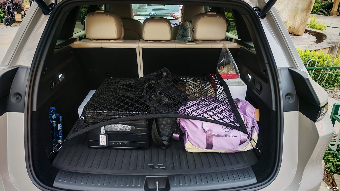 真的太喜欢这个后备箱了,①喜欢它的大,买车的第一个原因就是跨城回家和外出自驾游时我和媳妇两个大大的行李箱都有地方放了!这对我来说太重要了,受够了拿那么多东西坐高铁了!②有一些比较精巧的设计,弹力固定网的扣子的设计,再也不怕后备箱的东西滚来滚去了。