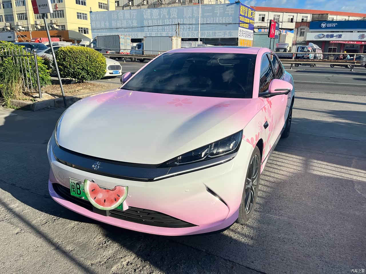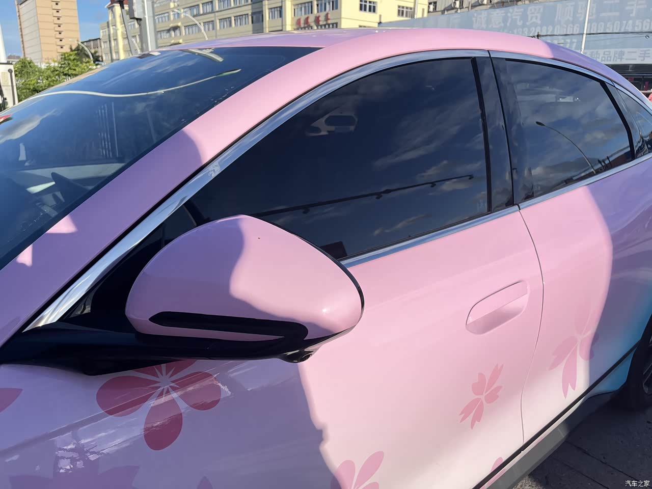 就问你们我的樱花粉Q不Q弹,比起前篇一律的颜色我更喜欢各种各样的车衣,老远就能认出来,晚上开车特省心。侧面溜背造型配上半隐藏门把手,运动感拉满,就是觉得前脸格栅要是再立体点,颜值还能再上一层楼。