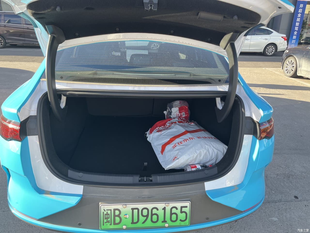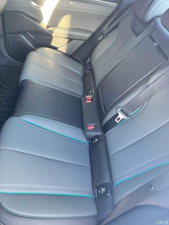 2820mm 轴距不是吹的,我 1 米 70大高个(哈哈,女孩子),坐前排头顶还有一拳多空间。后排更夸张,二郎腿随便翘,中间地板几乎是平的,仨人并排坐也不挤。前备箱能放充电线,后备箱装四五个行李箱都没问题,座椅还能放倒,搬家拉大件都能派上用场。全车 24 个储物格,手机、钥匙随手就能找到地儿放。