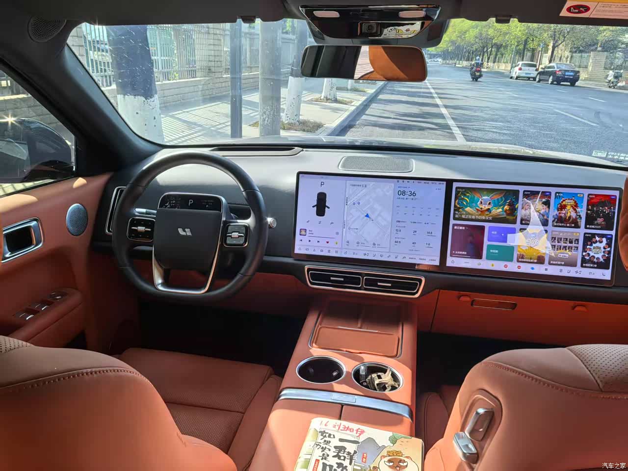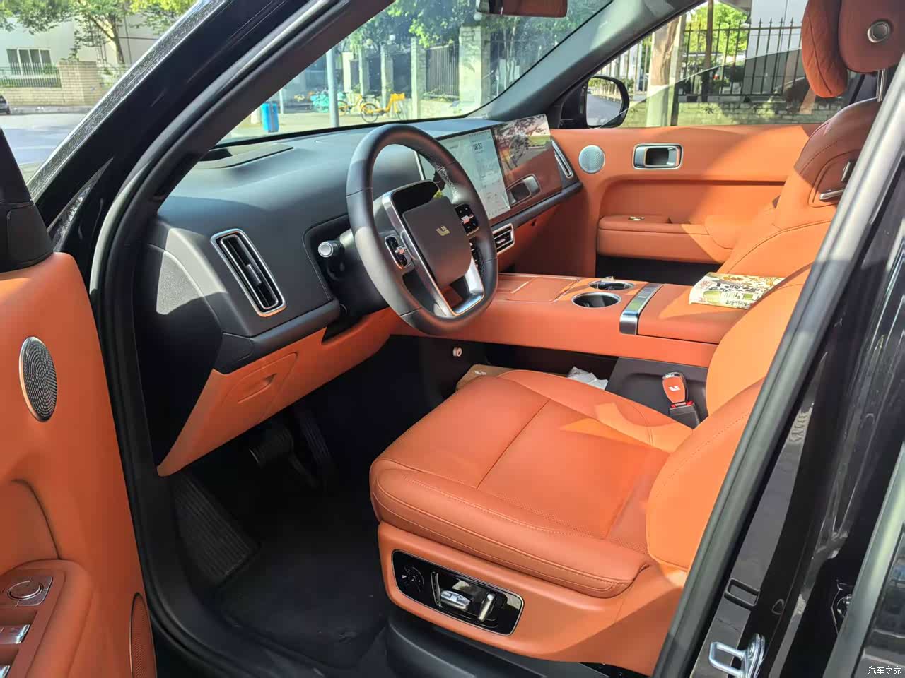 橙内应该是最多让人选的颜色,车内异味(新车味)很小,小桌板,吸顶电视,皇后座椅,冰箱,这些东西的配备让理想秒变移动的家,一二排的座椅通风,让人也很爽。