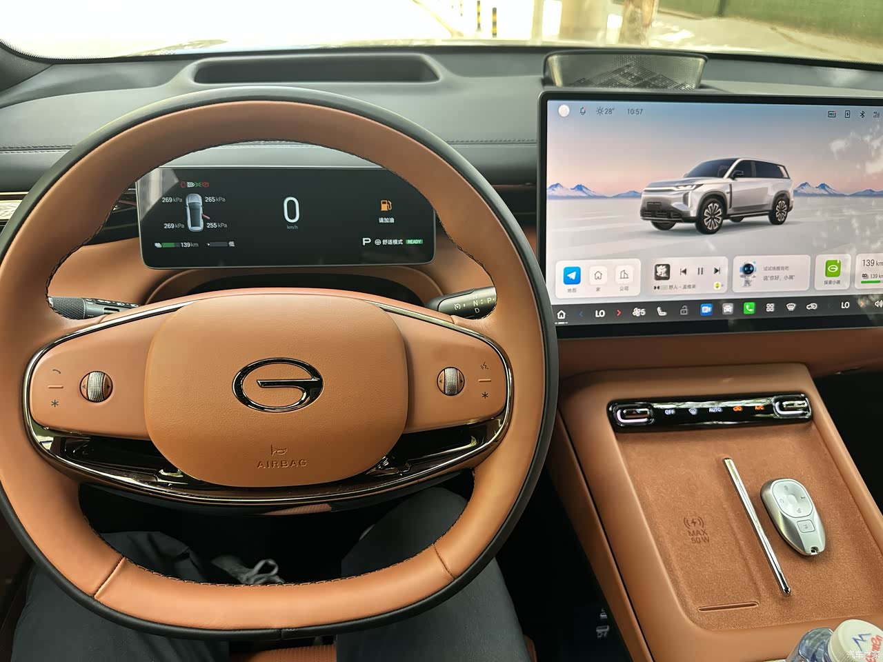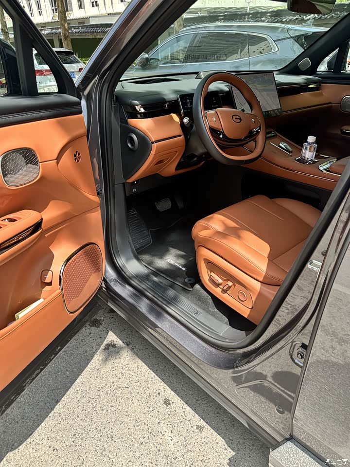 内饰都是真皮的,座椅很柔软,车内没有塑料感,高速行驶时车内静谧性特别好,甚至听不到风噪,前排还有通风加热按摩功能,确实很享受,无线充电功能很方便,后排还有电视 ,孩子上车就有事干了,不用担心孩子吵吵闹闹的,可以专心开车了。