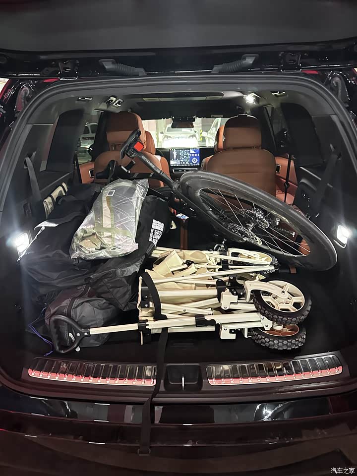 大尺寸6座车的空间还是很顶的,坐6个成年人毫无压力,买之前以为坐了6个人行李就不太够放,其实实测下来储物空间也不算小。可能是因为我们都不咋爱用行李箱,都是背背包的,把副驾脚下和二排过道利用起来足够3个家庭出行。把第三排收起来可以放3辆公路车还是很酷的,满足一个车不新购配件4 2 2 2,哈哈哈哈哈
