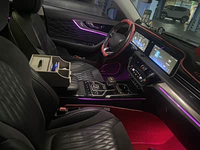 红旗hs5黑色款,宛如一位优雅而又神秘的绅士,散发着独特的魅力。 前脸部分,标志性的直瀑式进气格栅采用黑化处理,竖向的镀铬饰条被高光黑色取代,犹如夜幕中的神秘瀑布,深邃而威严。贯通式旗标也进行了黑化,与黑色车身完美融合,仅保留中间那一抹鲜艳的红色,成为黑暗中的点晴之笔,辨识度极高。飞翼大灯造型犀利,搭配上红旗之翼迎宾光毯及前旗标灯,营造出强烈的视觉冲击力。 车身侧面,流畅的线条勾勒出肌肉感十足的车身,修长的车身比例与溜背线条相得益彰,展现出稳重与动感并存的姿态。2.0英寸的熏黑轮毂,搭配美齐林静音轮胎,不仅提升了运动感,还保证了行驶的舒适性。车窗周围的镀铬饰条在黑色车身的映寸下,更显精致,为整车增添了一份豪华感。 车尾部分,贯穿式箭羽尾灯经过熏黑处理,夜间点亮后犹如一道划破黑夜里的光带,独特而醒目。后保险杠及尾灯表面的镀铬饰条也采用了钢琴烤漆的熏黑装饰,与前脸和车身侧面的黑化设计相呼应,进一步增强了整车的运动氛围。红旗黑色hs5以其独特的黑化外观设计,将庄重典雅与时尚运动完美结合,成为道路上一道亮丽的风景线。