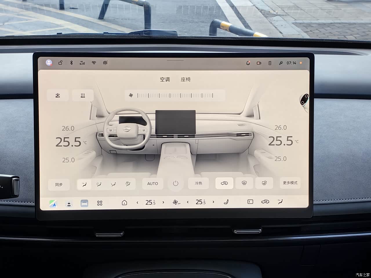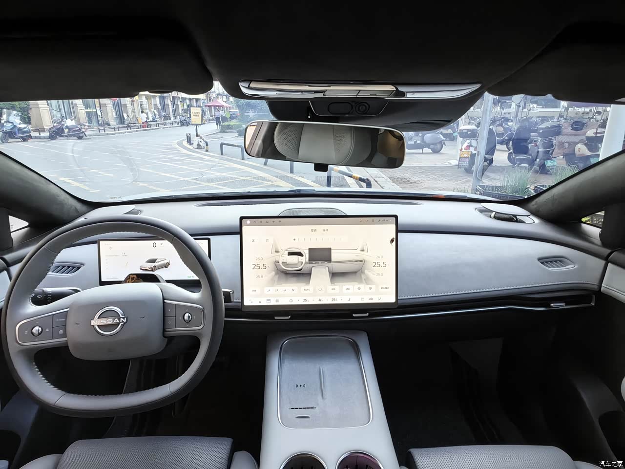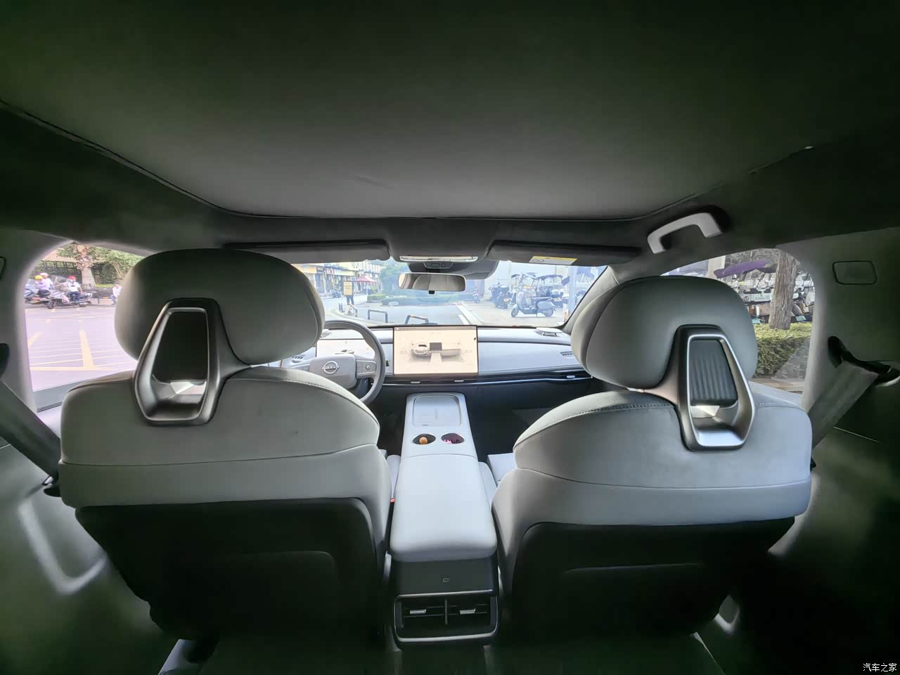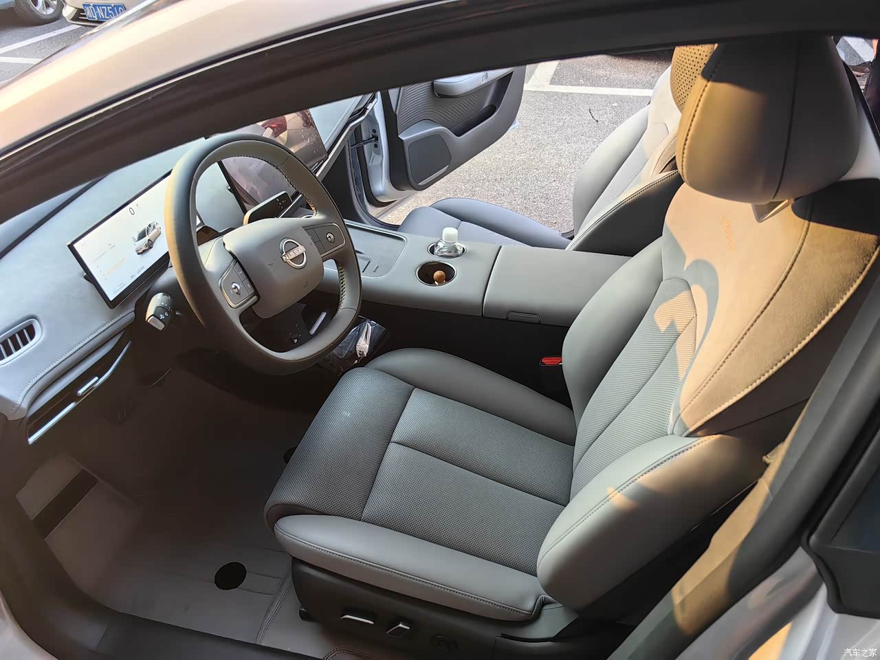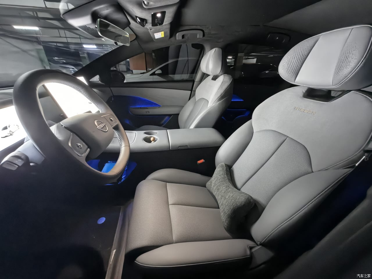 整车内饰以皮质材料为主,用料讲究。内饰颜色有两种,一种是白灰双拼色,一种是纯灰色。因害怕白色不耐脏,选择了纯灰色的内饰颜色,其实白灰双拼色更漂亮些。 日产大沙发是小有名气的,主副驾升级成为AI零压云毯座椅,内置49个传感器+19个气囊,实时监测体压变化,自动调节腰/腿支撑,长途驾驶腰背疲劳感显著降低。 256色的氛围灯提高了整车质感,它还有一个隐藏功能:在下车开车门时,如果车门外有障碍物(行人、电动车、汽车等,此时氛围灯会显示红色灯光,提醒我们开门时请小心,这个功能非常实用。