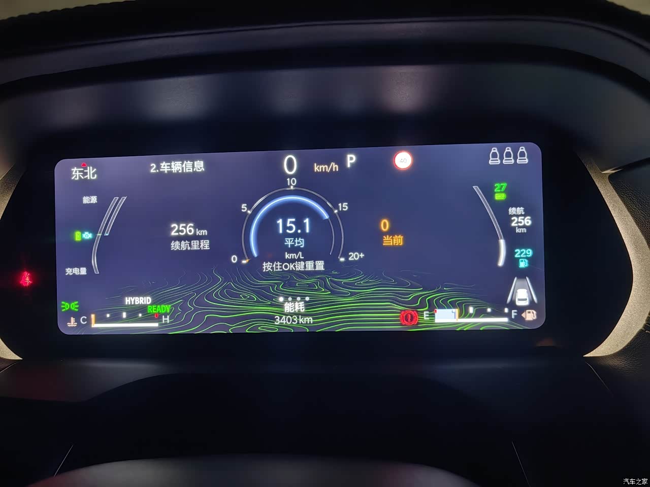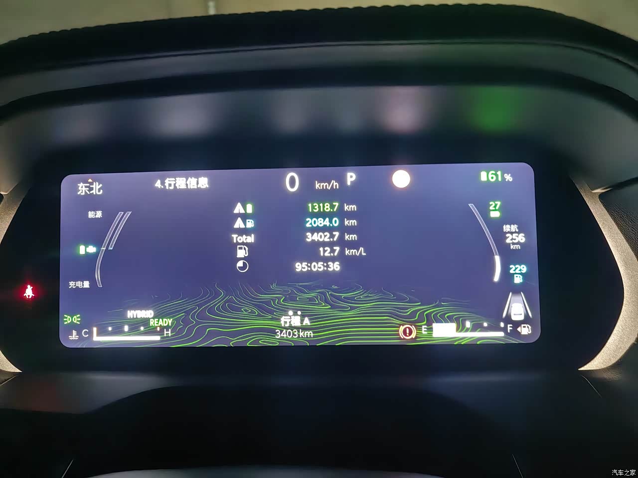 有鉴于本车纯电续航里程仅47公里,而且只有慢充接口,在城市里难以找到充电的地方。因此离开家里在外面只能当油车用了,我一般上高速大开车辆的充电开关,让发动机充电。