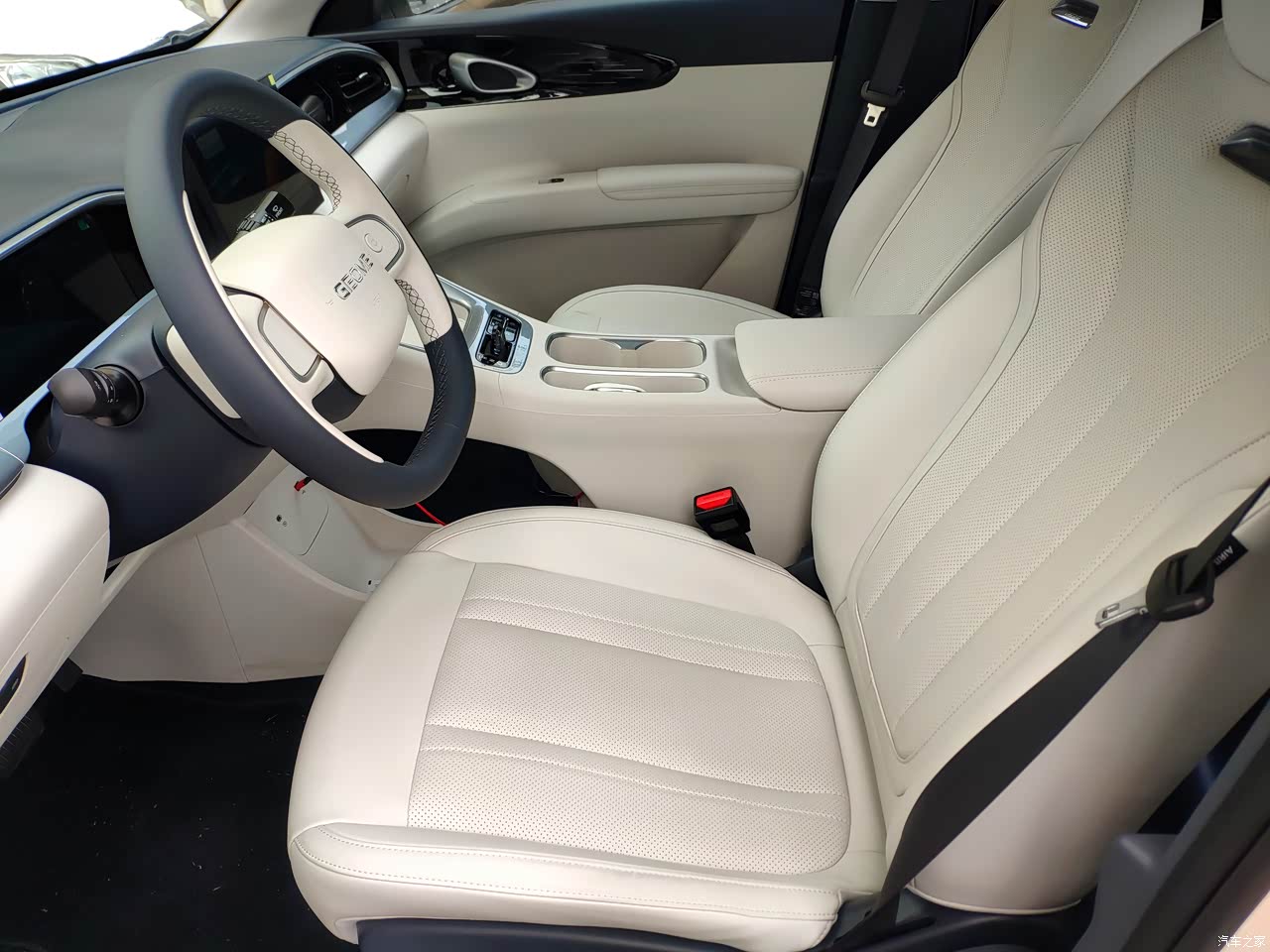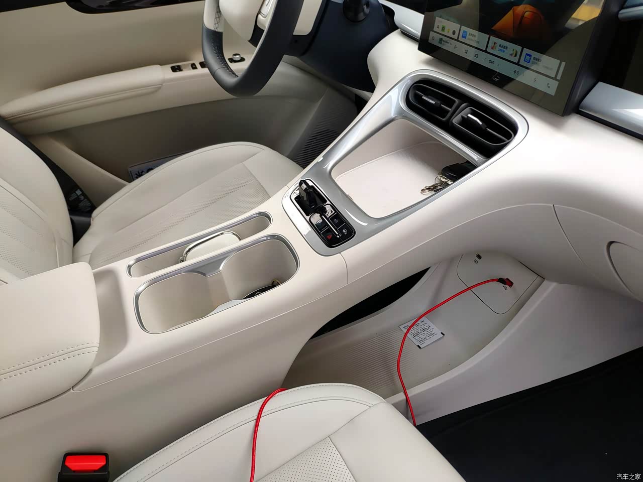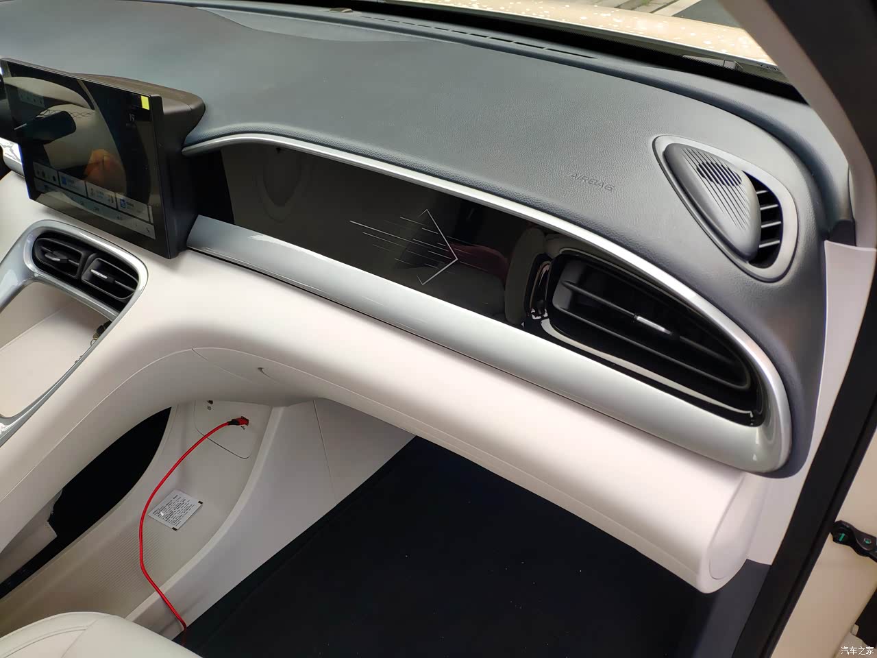 内饰是比较清爽的白蓝色为主,在加上烤漆色泽的仪表台面板装饰,整体搭配在一起还是蛮好看的。现在天气也热空调基本上车就会开,出风量和制冷效果挺好的,基本三四分钟车内温度就会明显降下来了。