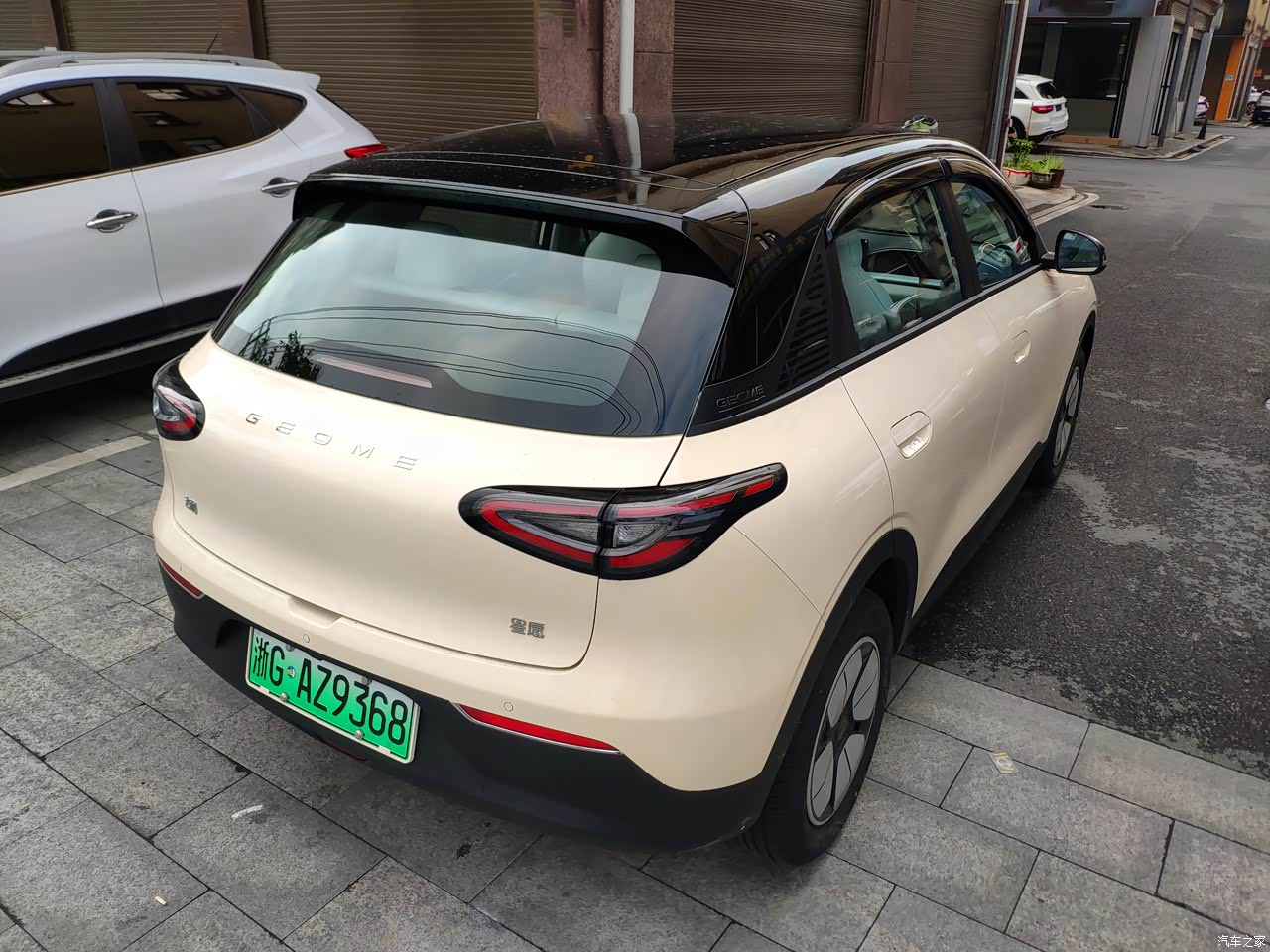 外形是走圆润的风格的,加上米色车漆颜值这块很耐看的。比较显眼的就是红色和银白色的三角车灯了,美观度和亮度都很不错。