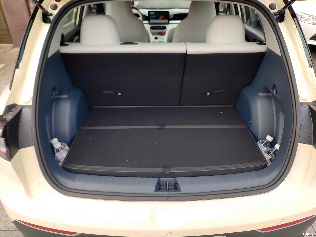 车子不算很大但是车内空间给的还是算充足的,前后之间的位置空余了半米左右的间距,腿部空间可以自由的活动。车门格、双层的台子、手扶箱手套箱、前后备箱等等,储物空间设计的也是多的。