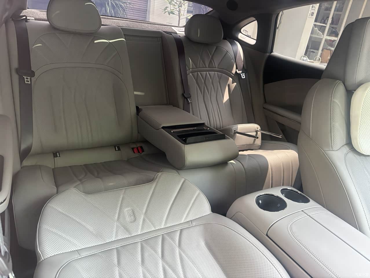 内饰采用大面积皮革包裹,座椅填充度和舒适度也很棒,特别是灰色内饰真不错,第二排的老板位躺着按摩通风非常舒适,而且前排座椅可以放平和后排连接躺着看电视,